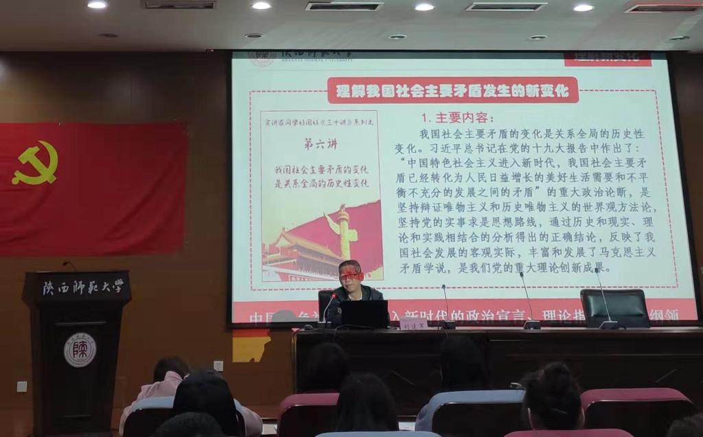 11月4日,机关党委书记刘建军老师作“中国特色社会主义进入新时代的政治宣言、理论纲领、行动指南”报告。刘老师紧密结合实际,深入分析了习近平新时代中国特色社会主义思想的内涵,鼓励学员们要在树立远大理想的同时,脚踏实地,努力奋斗。