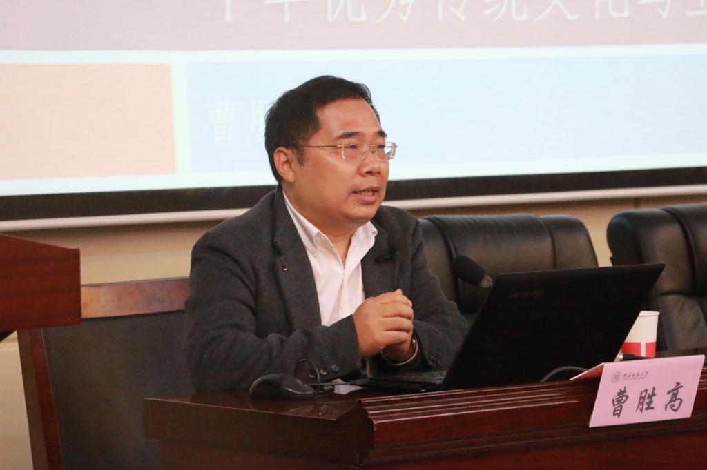 开班仪式结束后,太阳成集团tyc曹胜高教授以“中华优秀传统文化与立德树人”为纲进行了专题讲授,围绕“继承发展中华优秀传统文化的历史意义”,“中华优秀传统文化的教育理念”和“新时代老员工如何立德树人”三个方面,号召青年一代争做理想与才华兼具的时代弄潮儿。