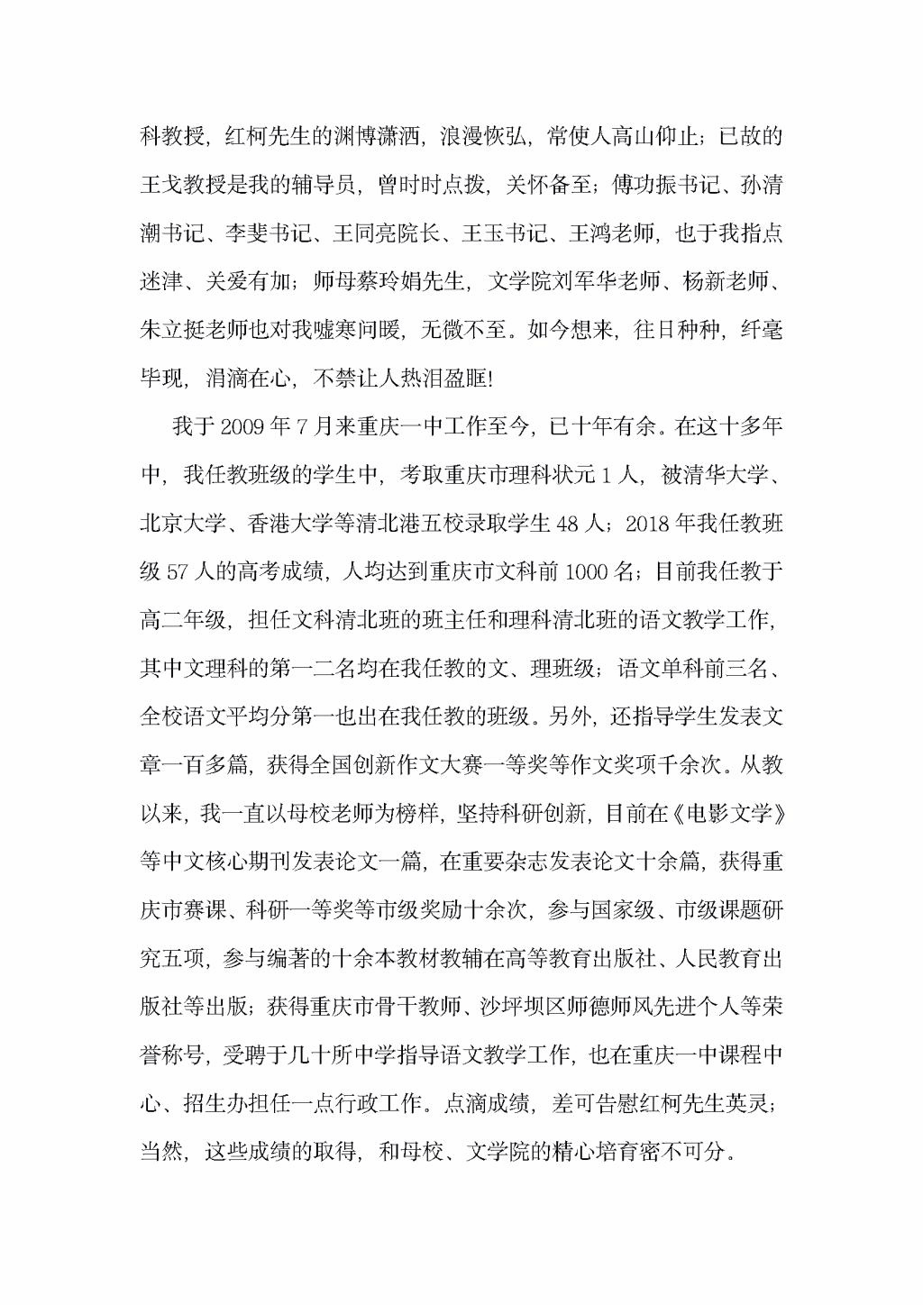 给母校的汇报信——来自重庆一中唐中浩
