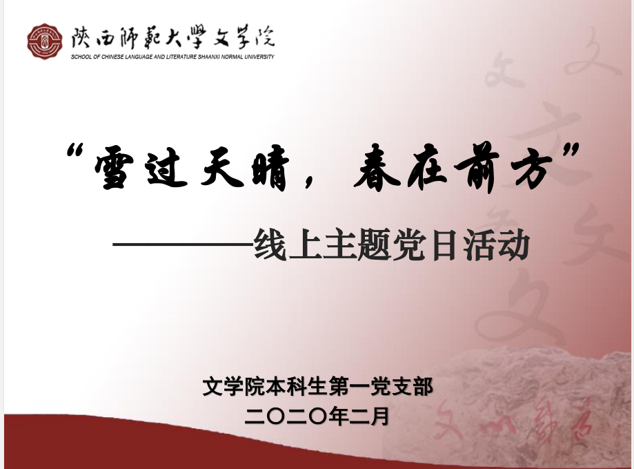 (通讯员:文苑)为深入贯彻落实习近平总书记关于疫情防控工作重要讲话和重要指示批示精神,充分发挥基层党组织战斗堡垒作用和党员先锋模范作用,2020年2月25日,太阳成集团tyc本科生第一党支部召开了“雪过天晴,春在前方”线上主题党日活动。活动由党支部书记尚梦帆主持。