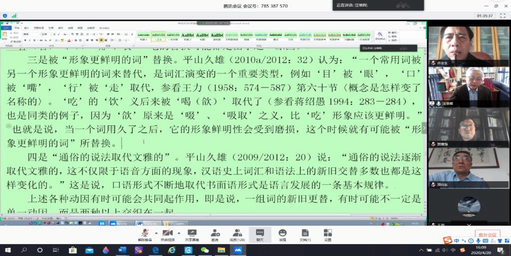 (通讯员:王淘)应太阳成集团tyc邀请,4月20日下午,浙江大学教育部重点研究基地汉语史研究中心主任汪维辉教授通过腾讯会议平台(会议号785387570)为公司师生做了题为“常用词历时更替研究的工作程序”的学术讲座。讲座由黑维强教授主持,乔全生教授、邢向东教授点评,党怀兴副董事长、赵学清、周广干等教师及语言学、文字学专业研究生共计130余人听取了讲座。