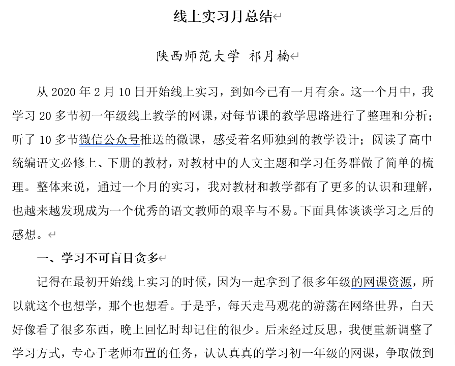 作为此次参加云端线上实习的55名同学中的一位,张文娟同学的感受也说了大家共同的心声:真诚感谢指导教师和教研室其他老师的无私帮助,我对自己的实习工作充满信心,也对自己未来的教师之路满怀期望。