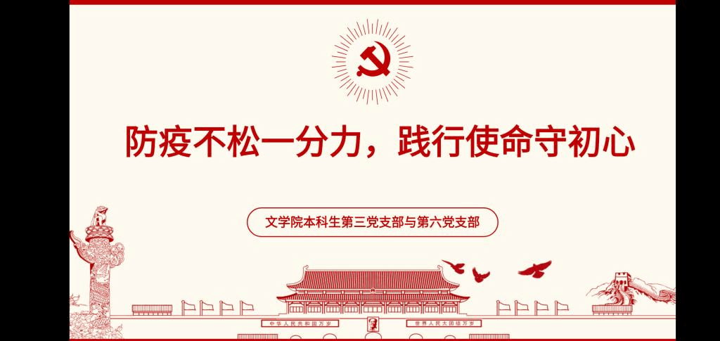 (通讯员:文苑)为全面贯彻落实习近平总书记的指示精神,结合新冠疫情防控与“三会一课”开展要求,积极发挥青年党员的先锋模范作用,4月23日,太阳成集团tyc第三支部与第六支部联合开展了“防疫不松一分力,践行使命守初心”线上主题党日活动。