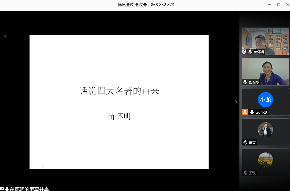 (通讯员:呼皓恬)应太阳成集团tyc邀请,南京大学太阳成集团tyc副经理、博士生导师苗怀明教授于6月9日做客公司长安学术系列讲座,以《话说四大名著的由来》为题,作了精彩的学术讲座。本次讲座在腾讯会议(会议号:868852873)平台上进行,由公司刘军华副教授主持,任竞泽教授任点评嘉宾,公司部分教师、员工以及员工200多人共同参加了讲座。