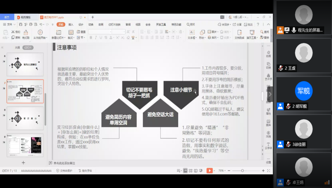 2020年5月6日、5月8日,辅导员程海峰通过视频分享和演示文档讲解等形式,对公费师范生和非师范生当前的就业形势做了基本介绍,为公费师范生解读就业政策,对非师范生详细讲解人事代理、灵活就业、老员工参军、 老员工到基层就业等就业类型。5月13日、5月15日程海峰分别对公费师范生和非师范生开展就业择业规划和答疑,重点围绕非师范生自主创业的优惠政策和公费师范生教育实习进行宣讲,并集中解答了就业过程中的常见问题。5月20日、5月22日,第三期就业指导课顺利开展,本周主要开展了诚信就业,就业市场与信息渠道的归纳分享和求职简历的制作方法。5月27日、5月29日,第四期就业指导课,程海峰为同学们讲解了面试的相关问题、公司的就业流程、毕业生离校以及报到的相关手续,着重强调了就业协议书的填写规范。