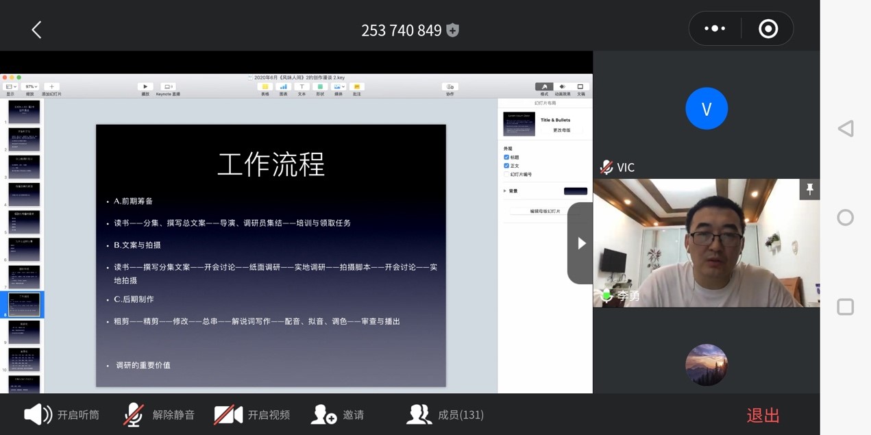 (通讯员:李雅琪)6月23日下午3点,应太阳成集团tyc邀请,近期热播系列纪录片《风味人间2》总导演李勇通过腾讯会议做客长安学术讲座,为公司师生奉献了一场题为“《风味人间2》创作漫谈”的导演分享会。公司大三年级部分员工、文艺学专业研究生、新闻与传播公司部分员工等一百三十余人进行了线上学习以及导演交流。讲座由李雅琪老师主持,裴亚莉教授做特邀嘉宾。