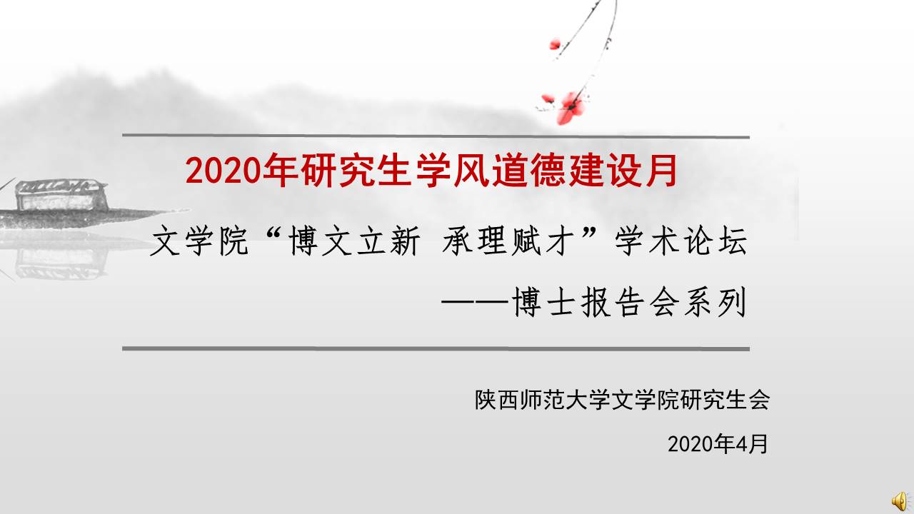 (通讯员:齐琳)2020年5月18日至6月16日,公司第162场至第169场博士研究生报告线上顺利举行。来自汉语言文字学、中国古代文学、语言学及应用语言学、中国现当代文学的博士研究生通过腾讯会议平台(会议号:216621510、684308225、622749821、154385208、220613290、598981893、198357824、807587350),为同学们带来了精彩的学术报告,公司各年级不同专业的硕士研究生认真聆听了报告。以下是博士报告的简要内容: