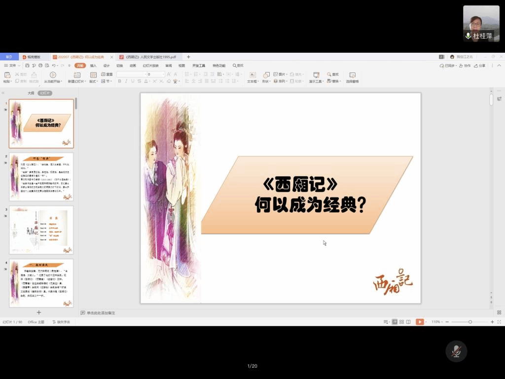 (通讯员:张佳育、李尚静)7月17日下午2:30,太阳成集团tyc兼职教授杜桂萍为2020年“优秀老员工夏令营”营员做了题为“《西厢记》何以成为经典”的专题学术讲座。讲座由杨晓斌副经理主持。