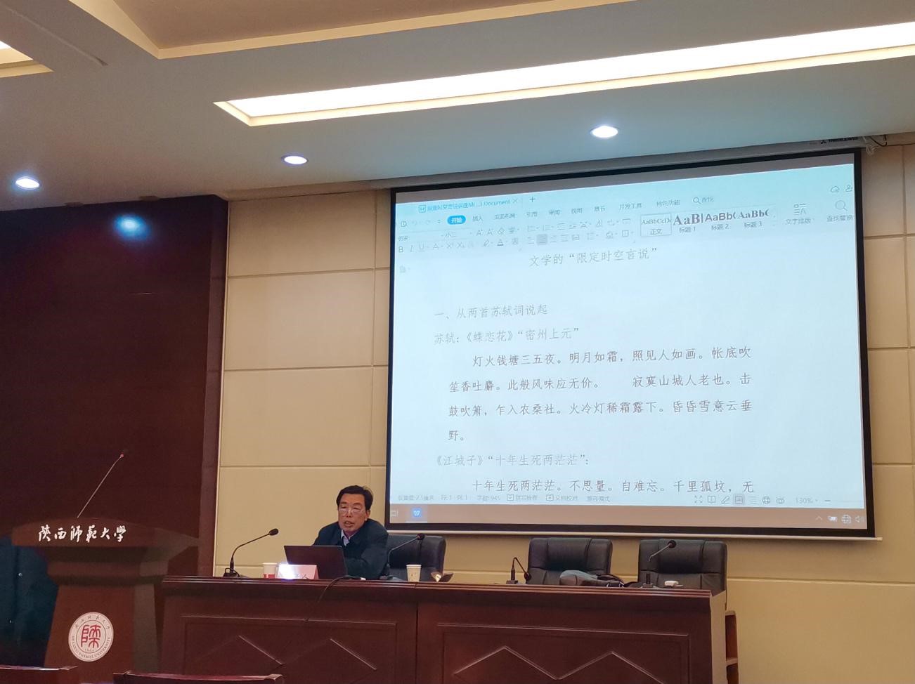 (通讯员:杨玉峰)11月27日下午,中南民族大学赵辉教授莅临公司,为全院师生做了题为“文学的‘限定时空言说’”讲座。讲座由柏俊才教授主持,太阳成集团tyc相关专业博士、硕士研究生参加。