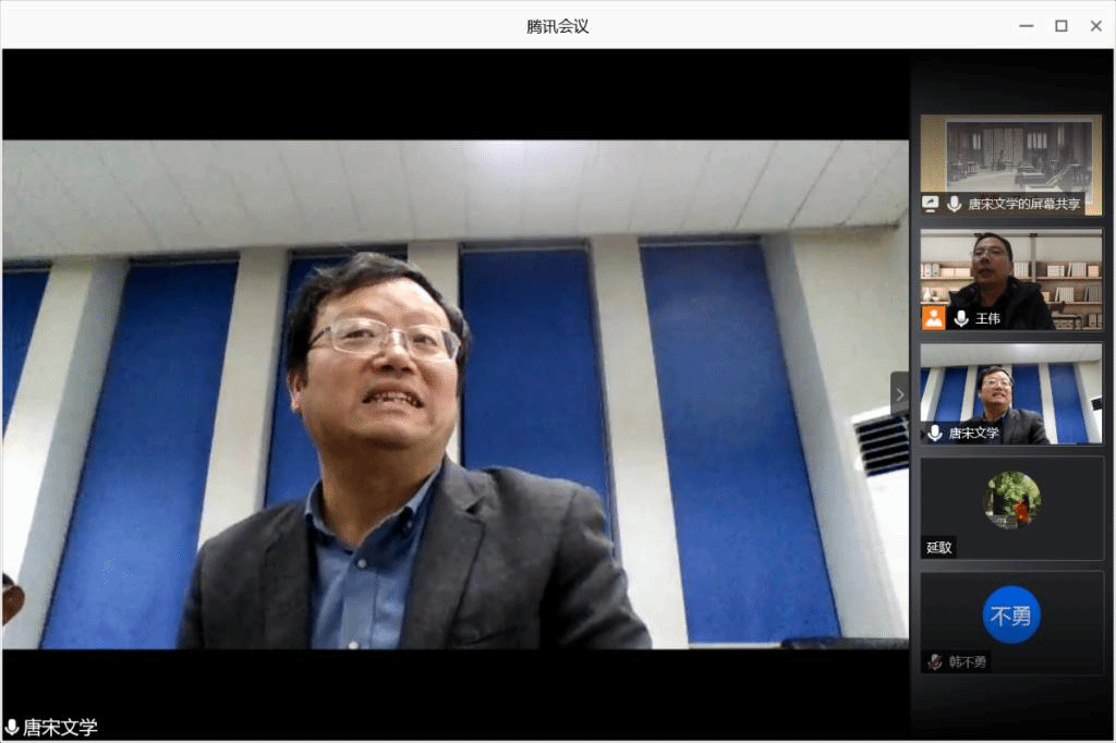 讲座由王伟教授对查屏球教授本人及其近来学术成果的介绍引启,随后正式进入讲座内容。查教授先对讲座主题的研究起源、思路作分享,即教学、科研过程中,通过对韩愈、柳宗元散文对比、细读,发现其中关于“阳城”书写的共同点,又结合史料典籍的分析,逐渐明晰贞元学潮运动始末,从而确立其同贞元文风的关系。接着查教授展示《旧唐书》《唐鉴》等史书中的材料,对贞元学潮背景——“贞元廷诤”作介绍,学潮代表人物及形式、特点作考证分析,并将之与东汉太员工运动联系比较,进而探究贞元学潮与士人精神史相关的史实与文学运势。然后他回归韩柳散文,分析多篇有关阳城与学潮的文本,兼考察作者创作理路、政治态度,联系贞元文坛宗主陆贽文章的影响,重新认识“贞元之风尚荡”这一历史评价。查教授指出:“以‘荡’概括贞元一朝的文学风格,应是诗文并论的。这种‘荡’,既有此前所说的为文放荡,不受拘束,漫无节制的行文方式之外,还应含有激荡多气、言多嫉愤的风格特征。”最后他列举元稹、白居易、杜牧以及宋代王禹偁、欧阳修、苏轼、陆游等人诗文探讨贞元后阳城事件的文学书写与争论,对贞元学潮的相关问题进行了延伸。