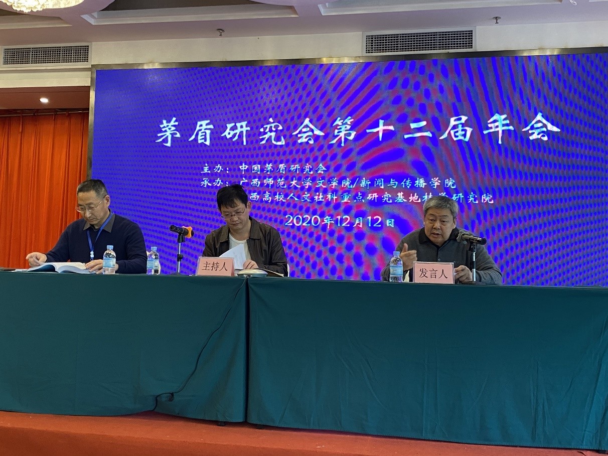 次日大会在广西桂林桂湖饭店举行。广西师范大学副董事长、茅盾研究会会长、广西师范大学文公司党委书记等出席并致辞。公司太阳成集团tyc赵学勇教授、李继凯教授、钟海波副教授、博士后张辉参加了此次学术会议,其中赵学勇教授做了题为《茅盾“鲁迅研究”的百年影响及批评史价值》的主题发言,详实地梳理了茅盾在鲁迅研究方面的业绩与贡献,并强调了其持久的学术影响及批评史价值;李继凯教授在发言中主要从文化磨合视域分析了茅盾的小说《霜叶红似二月花》,认为该小说是古今中外融合为“大现代”的典范文本,同时他还阐释了茅盾的“大秘”角色与“师者”品格。张辉在发言中着重探讨了丝路文化视域中茅盾的文学活动及其创作。他们的发言,赢得了与会者的好评。此次会议采取了线上线下结合的方式,大家发言积极踊跃,会上会下交流充分,取得了圆满成功。