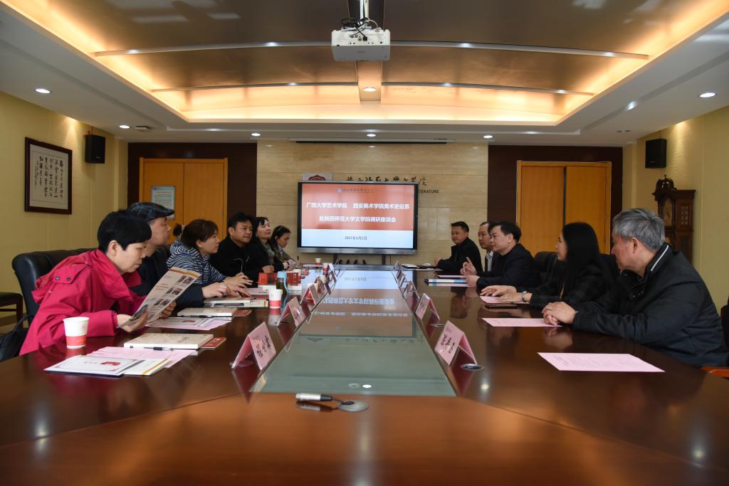 (通讯员:文苑)新春伊始,万象更新。3月2日上午,广西大学艺术公司经理、君武文化研究院执行经理胡红一,西安美院美术史论系党总支书记、副主任周园一行7人来公司调研交流。公司党委书记、教育部(陕西省)中华优秀传统文化传承基地负责人孙清潮,副经理王晓鹃、王同亮出席了座谈交流会。