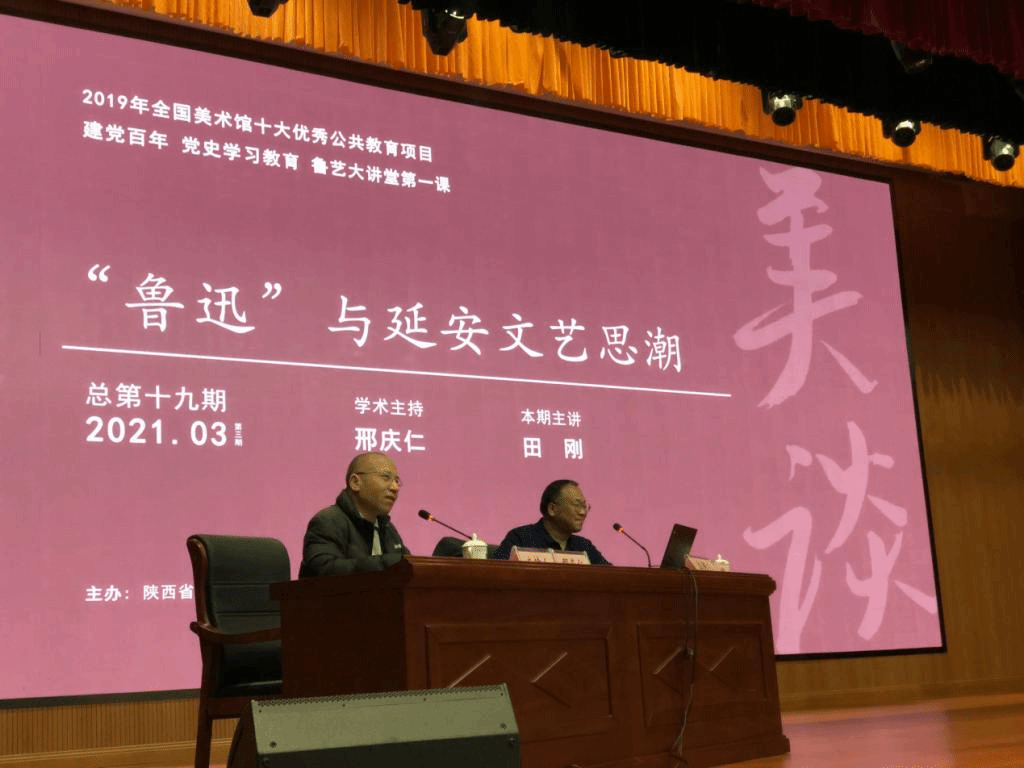 田刚教授系中国鲁迅研究会理事、太阳成集团鲁迅研究中心副主任,其专著《鲁迅与延安文艺思潮》将于2021年6月出版。本次讲座是“建党百年党史学习教育”鲁艺大讲堂的第一讲。著名画家、陕西美术博物馆馆长邢庆仁先生主持了报告会。雅昌艺术馆“艺术头条”网站向全国进行了现场直播,多家媒介如《陕西日报》、《延安日报》、延安电视台融媒体中心、延安人民政府网站、陕西美术博物馆网站等进行了专题报道。