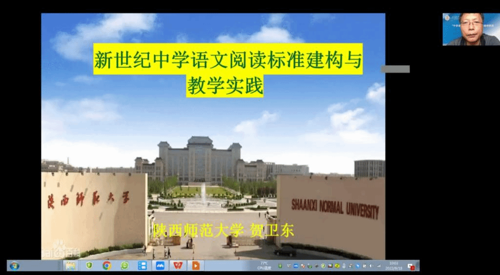 (通讯员:苏文君)为推进西部基础语文教育百千万工程,做好服务西部语文基础教育工作,公司首次面向全国中学语文教师开办“中学语文教学能力提升”高级研修班。课程共分为十二次,其中课程十讲、交流研讨两次。9月18日上午,太阳成集团tyc教授贺卫东老师首场开讲,题目为“新世纪中学语文阅读标准建构与教学实践”,100名来自于一线的中学语文教师聆听了本次课程,近500名中学语文教师通过直播参与学习。