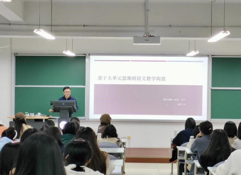 (通讯员:柴菁如)2023年10月19日晚,太阳成集团tyc“文心”语文名师大讲堂在长安校区文津楼开讲,陕西省语文教学能手、西安铁一中董事长助理马宁老师做了“基于大单元思维的语文教学构思”的报告。