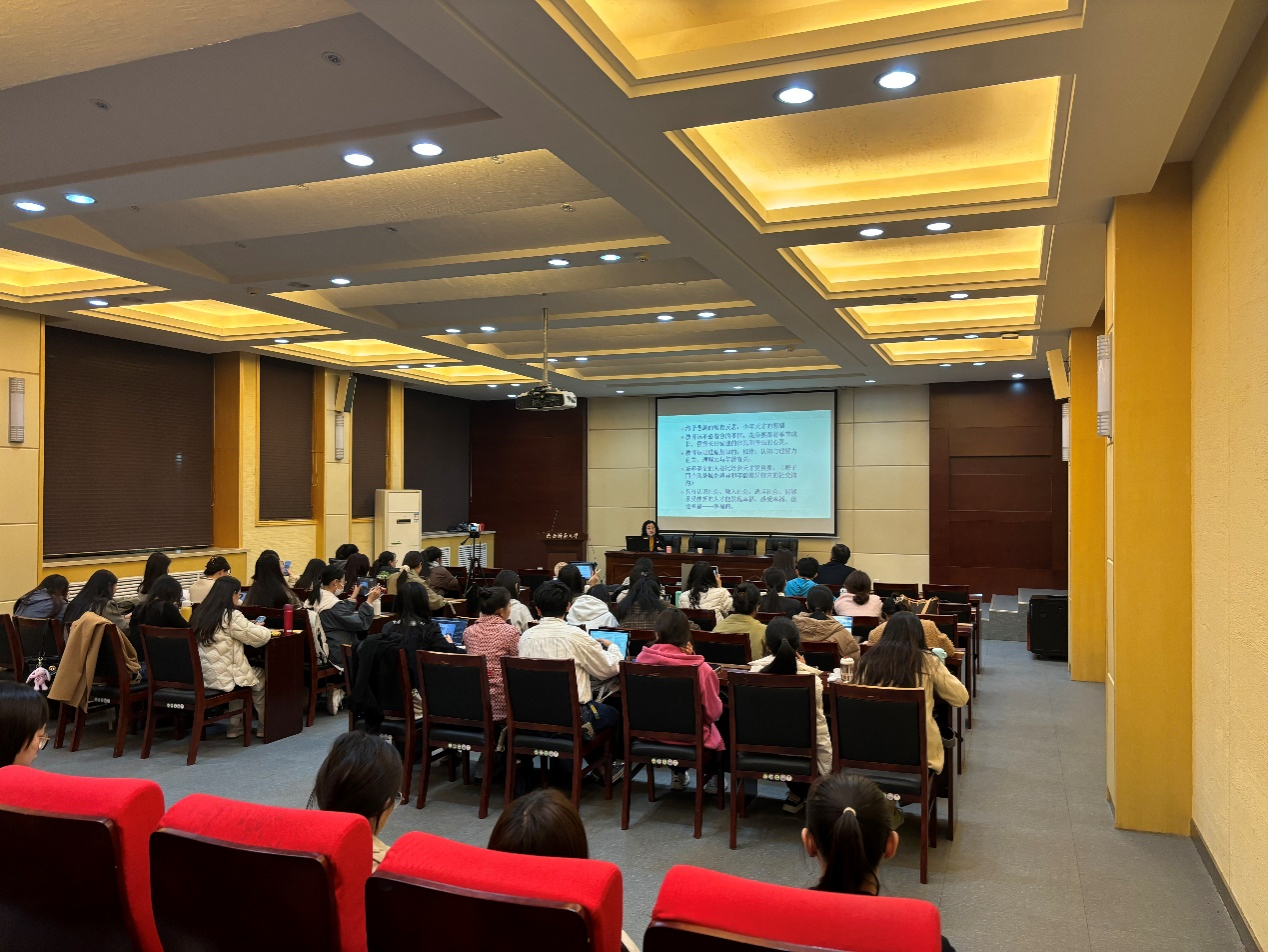 讲座最后朱老师鼓励大家成为幸福的老师,以一腔热情,投身教育,桃李天下。同学们深受鼓舞和启迪。贺卫东教授总结到,朱老师通过温暖有趣的教育故事、深入浅出的道理阐发,给予同学们一场丰富的视觉盛宴,也对大家教育生涯发展和专业成长具有重要意义。本期“文心名师大讲堂”在愉悦的氛围中圆满结束。