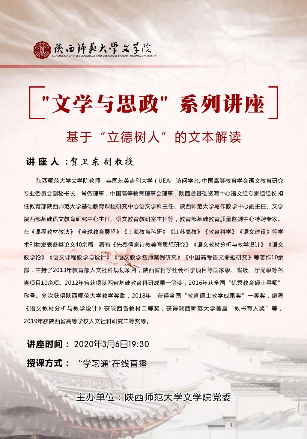 “文学与思政”系列讲座第十三讲预告