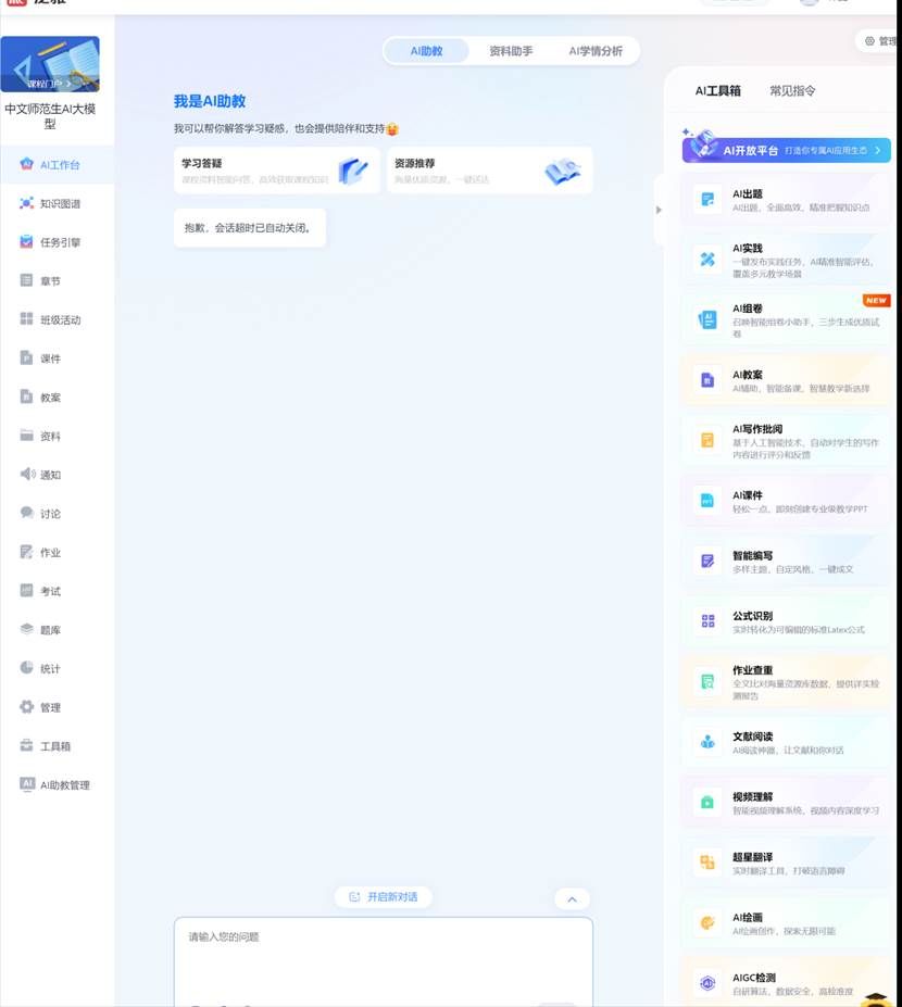 同时,各位教师可以把自己的资料上传到课程的知识库中,系统将如同教师本人亲自开展备课、辅导等教学活动,为教学工作提供真实、便捷的支持,确保知识的准确性和权威性。