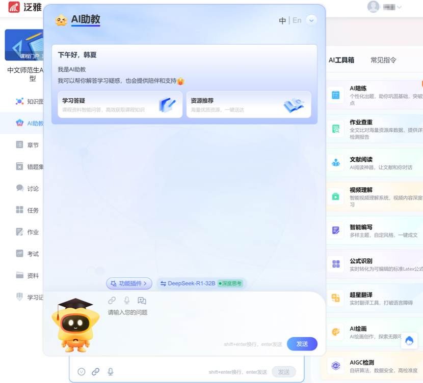 为助力中文学科教学与研究创新,公司现已启用“超星AI工具箱”,该工具箱融合了DeepSeek和超星汇雅的双模型。