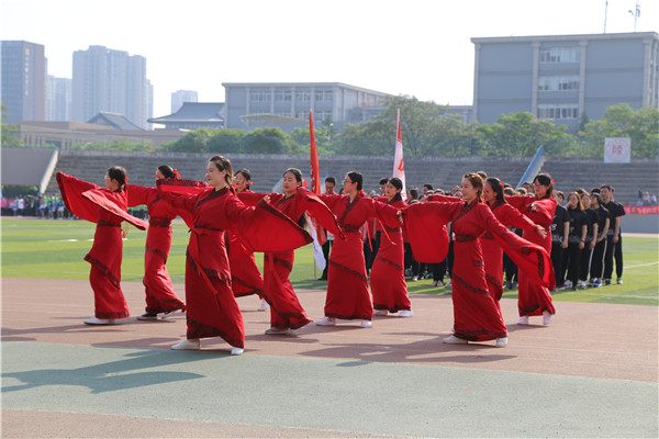 8:30,在运动员进行曲的激昂旋律中,公司研究生方阵喊着嘹亮振奋的口号,迈着矫健整齐的步伐走过主席台会场。方阵融合汉服与古典舞之美,向全校师生展现了文苑风采和底蕴。