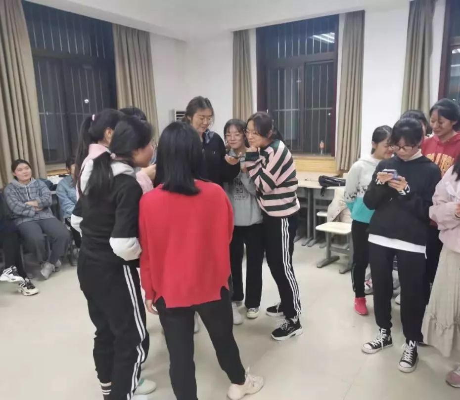 齐“心”参与,有序开展活动。各班先后进行了心理团辅活动,通过“大风吹”“大树与松鼠”“猜猜我是谁”“守护天使”“电波传递”“默契大考验”等活动,在轻松开放的氛围中,班级同学之间的默契越来越深,距离得以拉近,友谊得到升华,消除了陌生的紧张感,营造了真诚、尊重、安全的温馨班级氛围。在活动中同学们也开始逐渐思考自己的性格、爱好、生活方式、价值观和人生目标等内容,更好地认识自己、了解自己,实现自我接纳,增强自我尊重和自信。其中汉语言文学(卓越教师实验班)的同学将心理团辅地点选在唐城墙遗址公园,不仅使同学感受深厚的历史文化底蕴,也让同学们在接近自然的过程中收获了友情。辅导员王鑫也参加到各个班级的团体辅导中,与同学们一起参加活动,增强感情,解答同学们生活学习中的困惑。