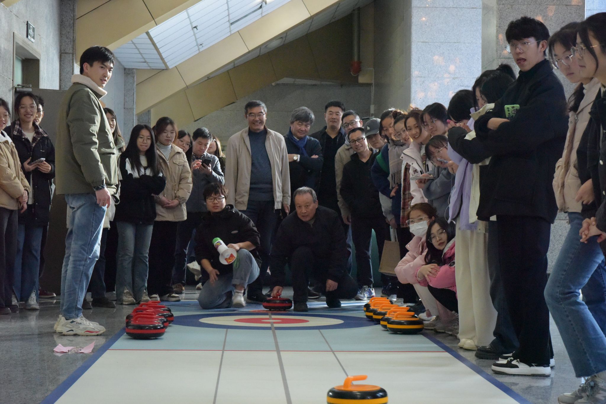 赛场上,师生们组成队伍,通过拉引击球、防卫击球等技巧将冰壶投入目标区域,冰壶的碰撞声与选手的欢呼声此起彼伏。各队伍排兵布阵、斗智斗勇,精彩的配合、精准的投掷和局势的连连反转让人目不暇接,参赛者在比赛过程中沉浸式感受到了冰壶的魅力。